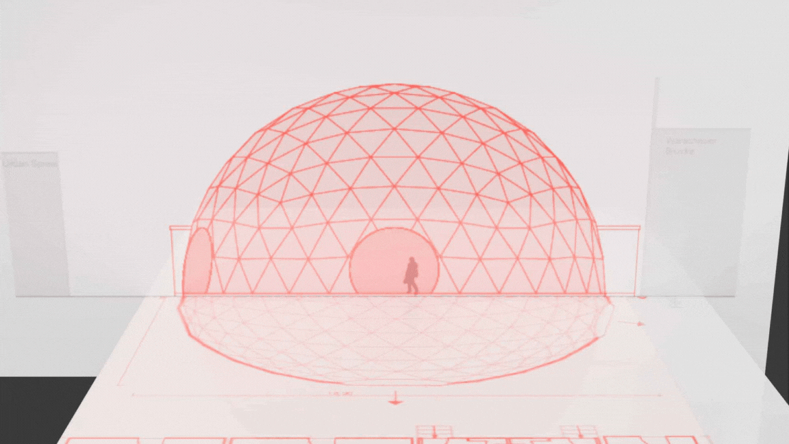 Entwurf eines multifunktionalen Eventraums in Form einer geodätischen Kuppel; leichte, modulare Struktur, hohe räumliche Flexibilität und markante architektonische Präsenz für temporäre oder dauerhafte Veranstaltungsnutzungen.