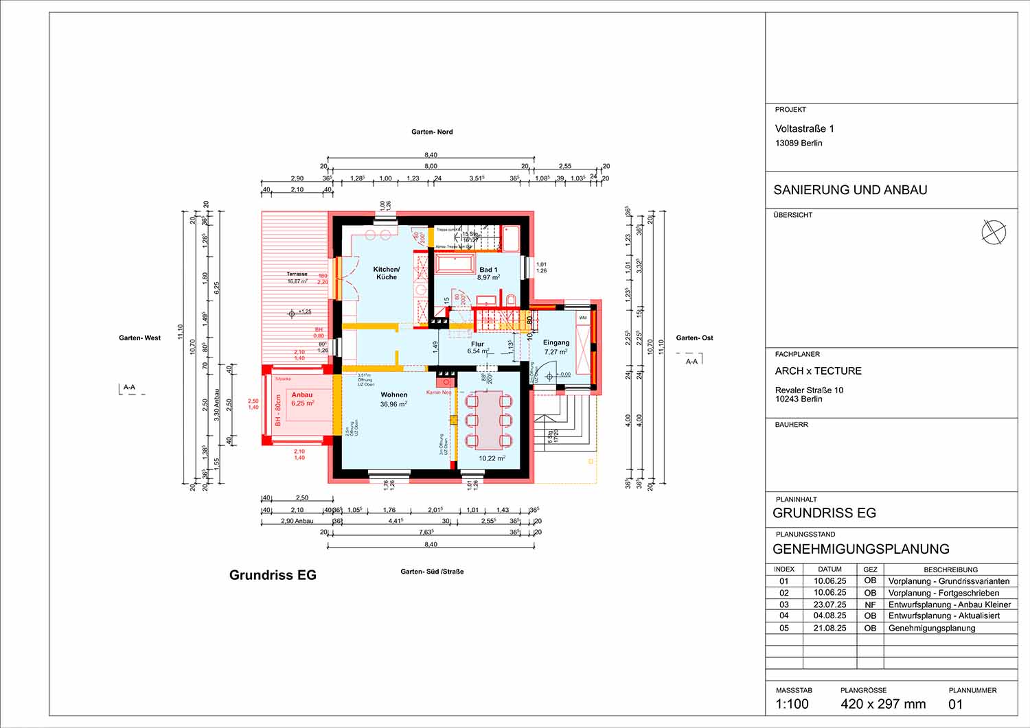 Home Extension & Renovation HOME EXTENSION AND RENOVATION Voltastraße 1 Renovation of a single-family house and extension through an annexe LP 1-5 Basic evaluation Preliminary planning Draft planning Approval planning Implementation planning